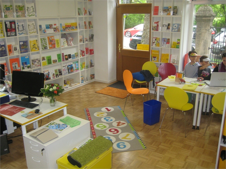 Die KIDS-online-Reporterinnen Leni, Christina und Johanna und die KIDS-online-Reporter Leonard, Quirin, Robinson und Yanick haben sich heute den neuen Kinderinfoladen in der Albrechtstraße GANZ genau