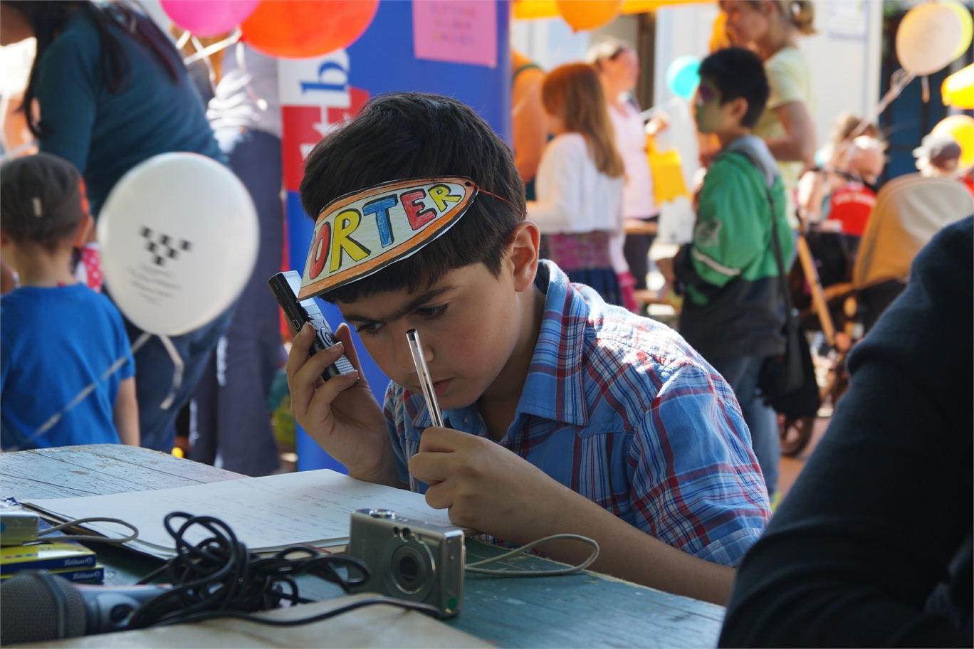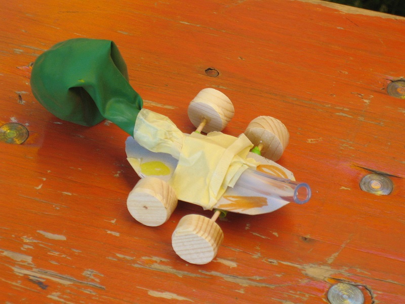Interview mit einem Luftballonauto-Bastler! Hier konnten tolle Ballonautos gebaut werden. Die Besucher konnten die kleinen Fahrzeuge aus einfachen Dingen selbst basteln. Wenn man in den