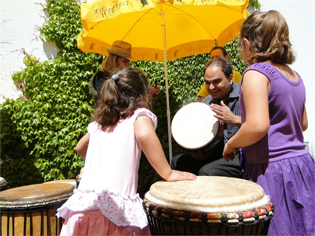 KIDS-Online Reporter Navid im Interview mit der Trommellehrerin: Gleich lostrommeln oder einen Rhythmus lernen – An diesem Stand konnten Kinder und Eltern einfach mal die