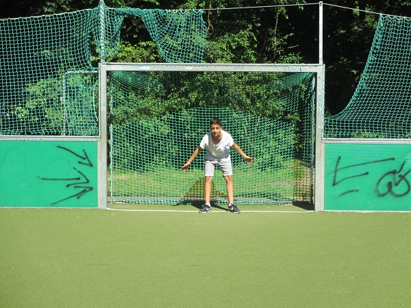 In der Nähe vom Hort in der Gilmstraße hat Revas (13) einen tollen Soccerplatz gefunden. Er ist etwas kleiner als ein normaler Fußballplatz.