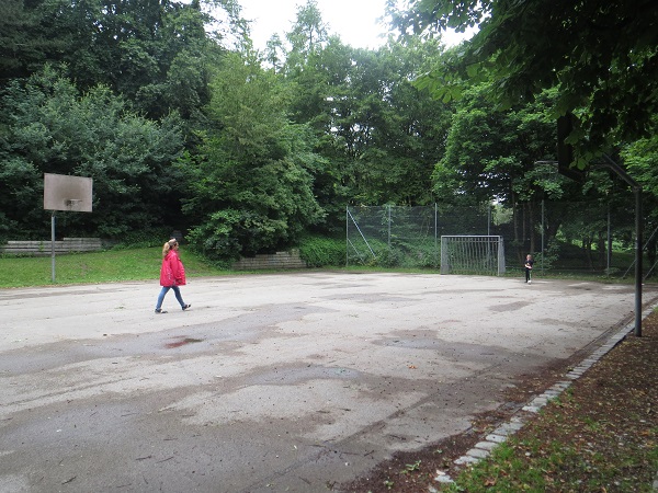 Beim Spielplatz an der Schmidbauerstraße. Hier gibt es Felder mit richtigen Fußballplatzmaßen, meinten die Forscher, Tore gibt es keine.