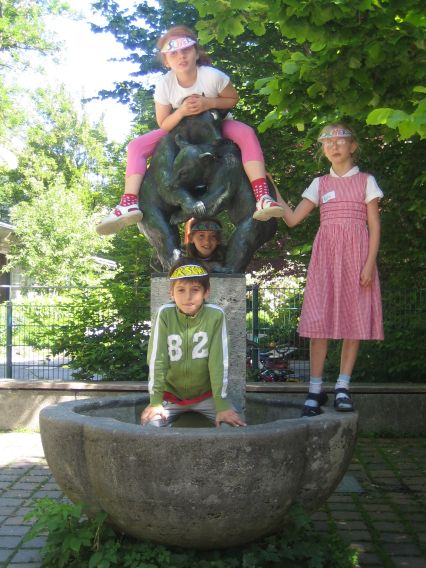 Auf dem Schulhof der Führichschule gibt es einen Brunnen, auf dem eine Statue steht, die zwei kämpfende Bären zeigt. Man kann auf den Brunnen klettern,