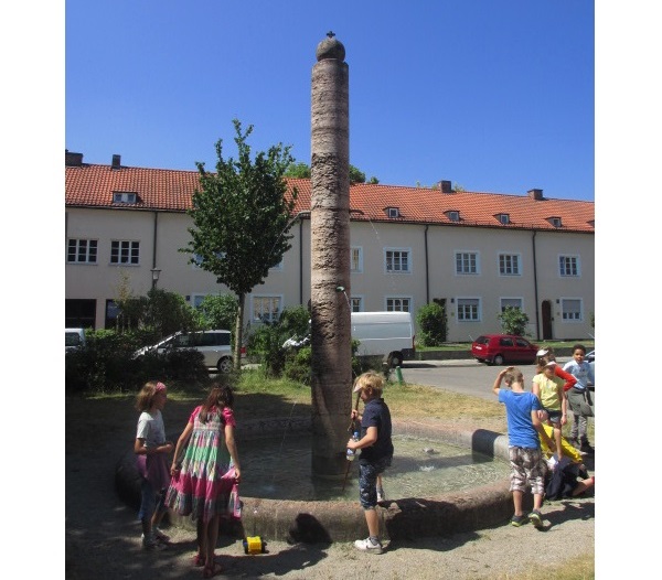 Diesen Brunnen findest du in der Nähe des Spielplatzes. Er ist ideal zum Plantschen.