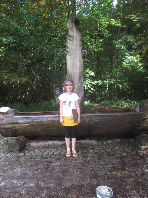 Der Holzbrunnen ist direkt am Eingang zum Perlacher Forst. Carolin (11), Tobias (10) und Carlotta (11) haben ihn genauer untersucht. Sie fanden heraus, dass viele