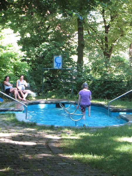 Melanie (10) gefällt das „Schwimmbecken“ besonders gut: „Das ist ganz schön kalt!“, sagt sie. Deshalb ist es auch gut, im „Storchenschritt“ durch das Wasser zu