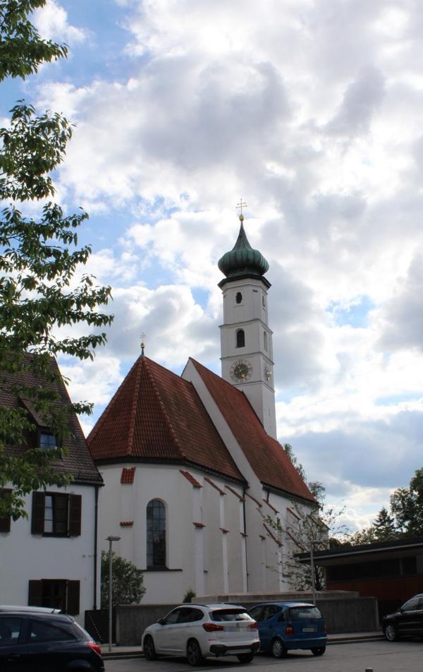 Kreuzstraße 10. Die Kirche wurde 1478 von Jörg von Halsbach erbaut. Eine Besonderheit ist, dass die Kirche gesüdet (nach Süden ausgerichtet) ist.