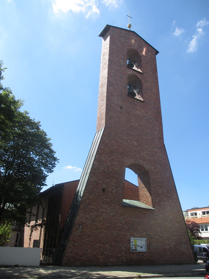 In der Scharnitzstraße 2 findest du die älteste katholische Kirche im Stadtbezirk. Sie wurde 1935 gebaut, während des Krieges von Bomben zerstört und nach dem