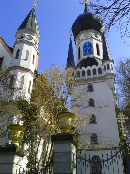 Schau dir den schönen Turm an dieser Kirche an. Schon von Weitem kannst du ihn sehen, es ist ein ein schöner Zwiebelturm.