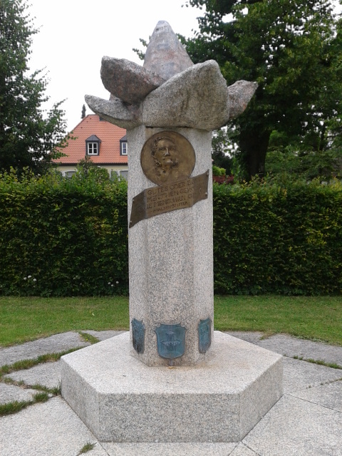 Auf dem Weg zur Schule kommen viele Kinder am Gustl-Waldau-Steig vorbei. Hier steht das Denkmal des Schauspielers Gustl Waldau. An beiden Seiten der Steinsäule sind