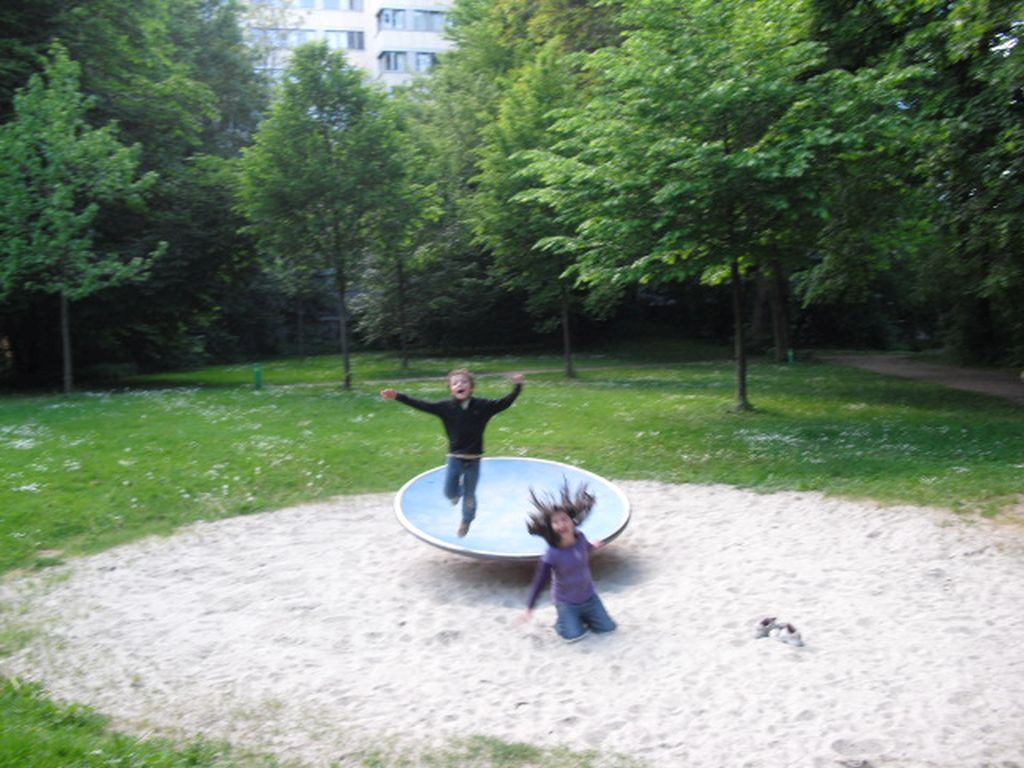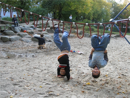 Die Kinder der Renntertschule finden die Drehscheibe super und auf den beiden Schaukeln kannst du mal versuchen parallel zu schaukeln.