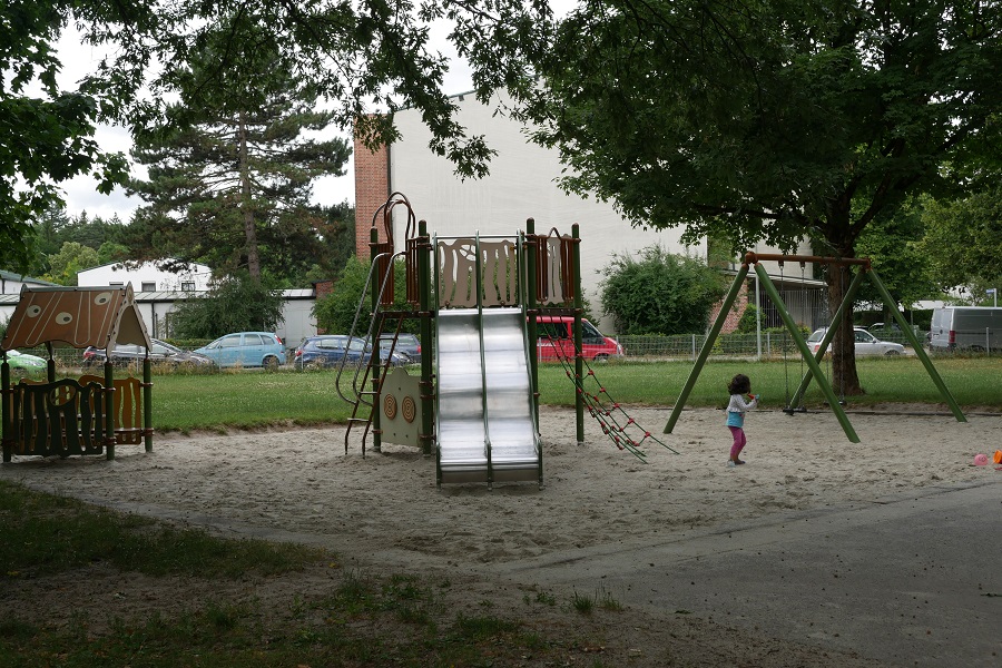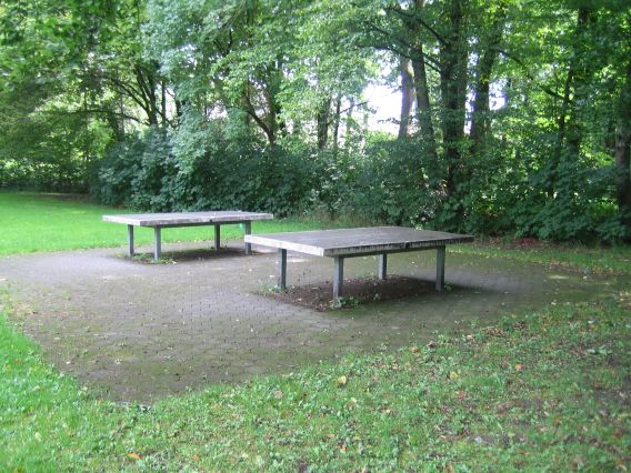 Wenn man zufällig vorbeikommt, dann ist der kleine Spielplatz ganz nett. Du kannst an zwei Tischtennisplatten spielen, dich in einem der Sandkästen vergnügen, zwischen den