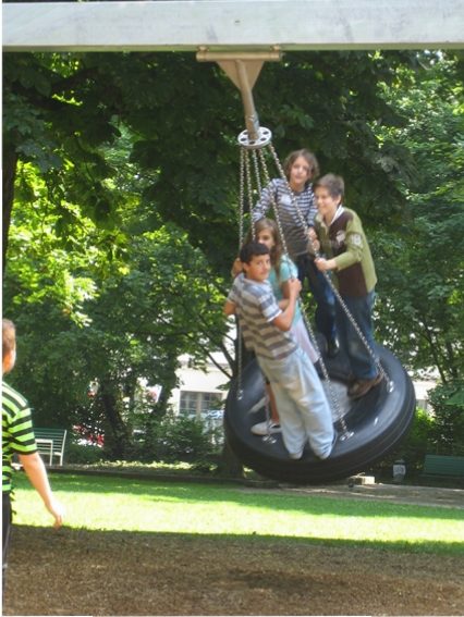 Hier waren die ForscherInnen Yilmaz (9), Fabio (10) und Martina (9). Du kannst hier schaukeln, klettern und im kleinen Häuschen spielen. Fabio spielt hier sehr
