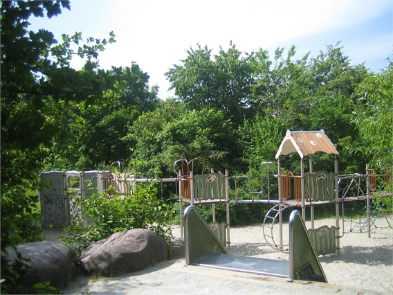 Die Bülow-, Gebele- und Denninger Straße führen zum Spielplatz gegenüber der Gebelegrundschule. Es ist ein weitläufig eingezäunter Platz mit Wiese sowie einer Tischtennisplatte. Der Spielbereich
