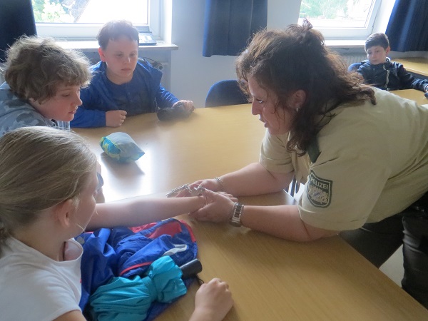Antonia (6), Laura (11), Maxi (6), Moritz (6) und Valentina (3) haben auf ihrer Forschertour zur Polizei viele spannende Dinge herausgefunden. Es gibt zum Beispiel