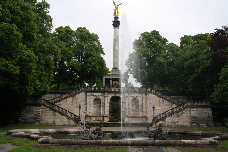 Der goldene Friedensengel ist ein Denkmal direkt an der Luitpoldbrücke, der auf einer hohen Säule steht und über die Stadt blickt. Vom Friedensdenkmal aus hat