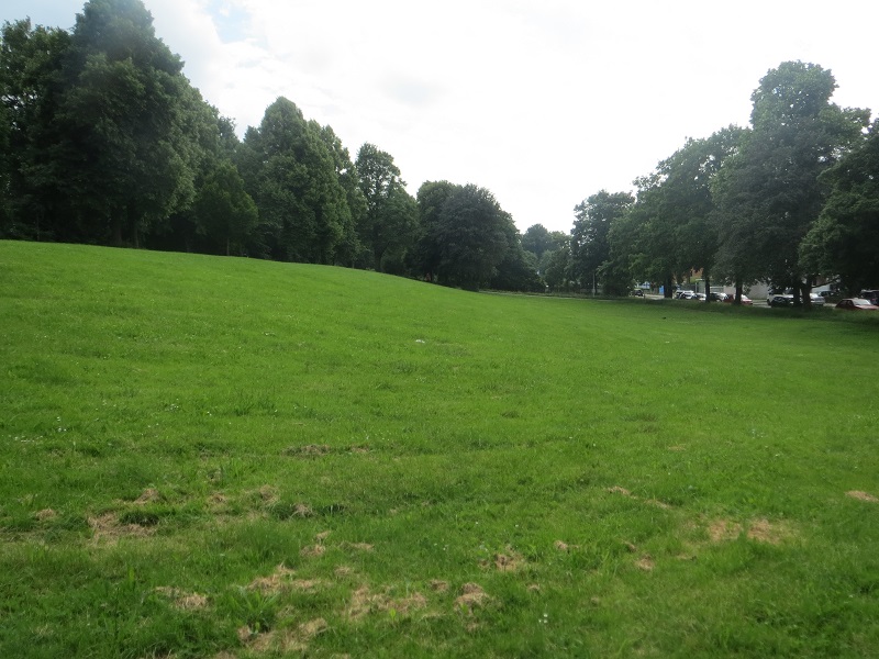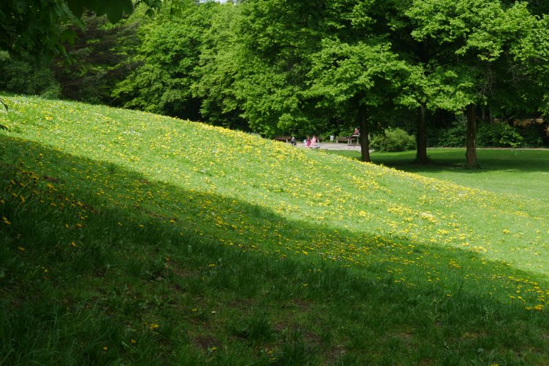 Eingekreist von vier verschiedenen Straßen, gibt es eine große Wiese mit einem tollen Hügel zum Schlittenfahren. Im Winter, wenn Schnee liegt, kommen die Kinder gerne