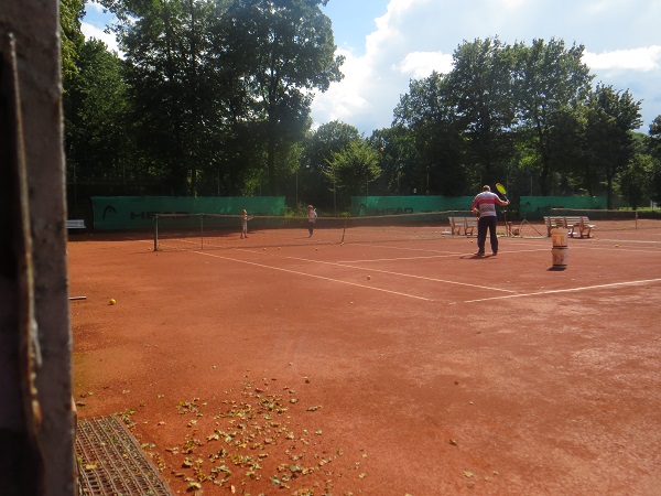 MTC Ausstellungspark e.V. Maxi (8), David (8) und Georg (9) haben den Tennisplatz erforscht. Auf dem Platz des MTC Ausstellungspark trainierten ein paar Kinder des Partnervereins Ballkonzept. Wenn