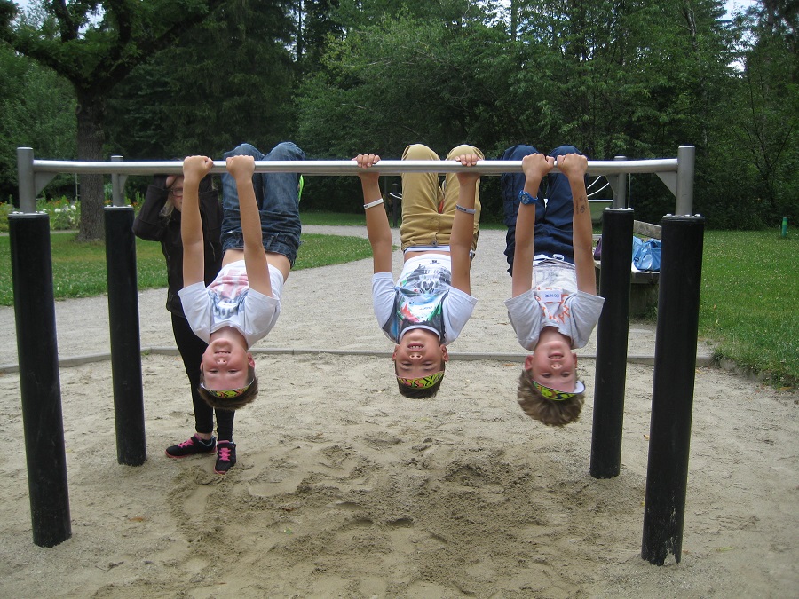 Direkt an den Spielplatz bei der Forstenrieder Allee grenzt ein Circle- Training Parcours an. Sarah (8), Theresa (7) und Lisa (8) kommen manchmal nach dem