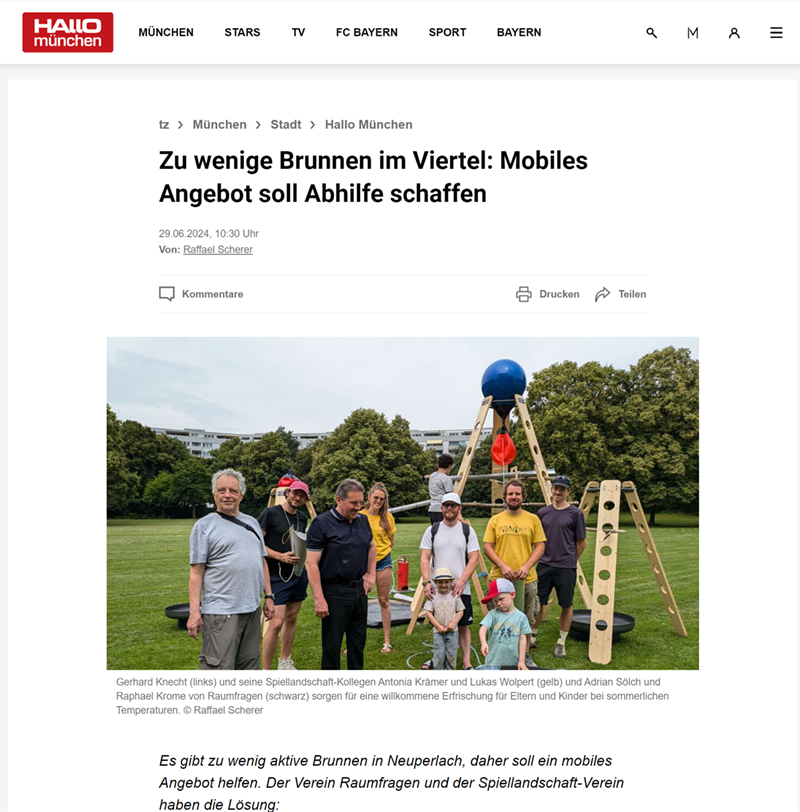 Es gibt zu wenig aktive Brunnen in Neuperlach, daher soll ein mobiles Angebot helfen.