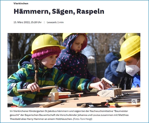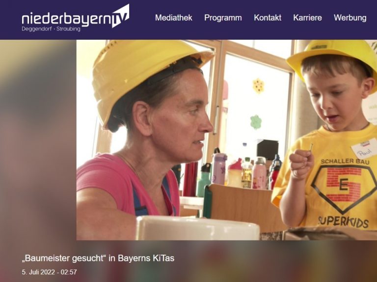 Zu dieser Initiative der Bayerischen Bauwirtschaft, in der wir im Auftrag der MPA Public Relations & Event Agentur in bayerischen Kitas auf spielerische Art Interesse am Berufsfeld Handwerk wecken, berichtete NIEDERBAYERN TV Deggendorf-Straubing über einen Einsatz am 1.7.2022 in Deggenau: