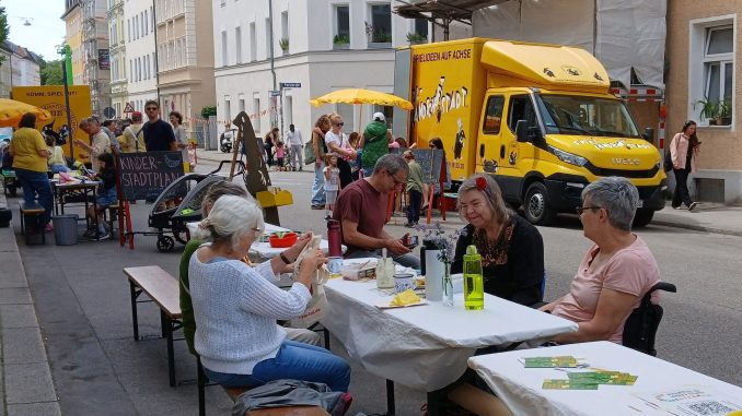 Die Nachbarschaft traf sich zum gemeinsam Brotzeitmachen – die Spiellandschaft war auch dabei! Radio LORA vom 1.6.2025.