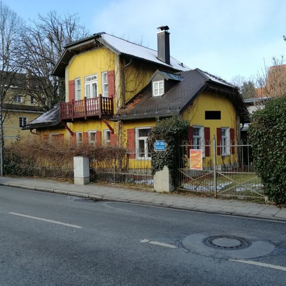 Auf dem Weg zum Sollner Hof sticht an der Herterichstraße ein Haus ganz besonders hervor: Es ist gelb gestrichen und hat weiße Fenster mit roten