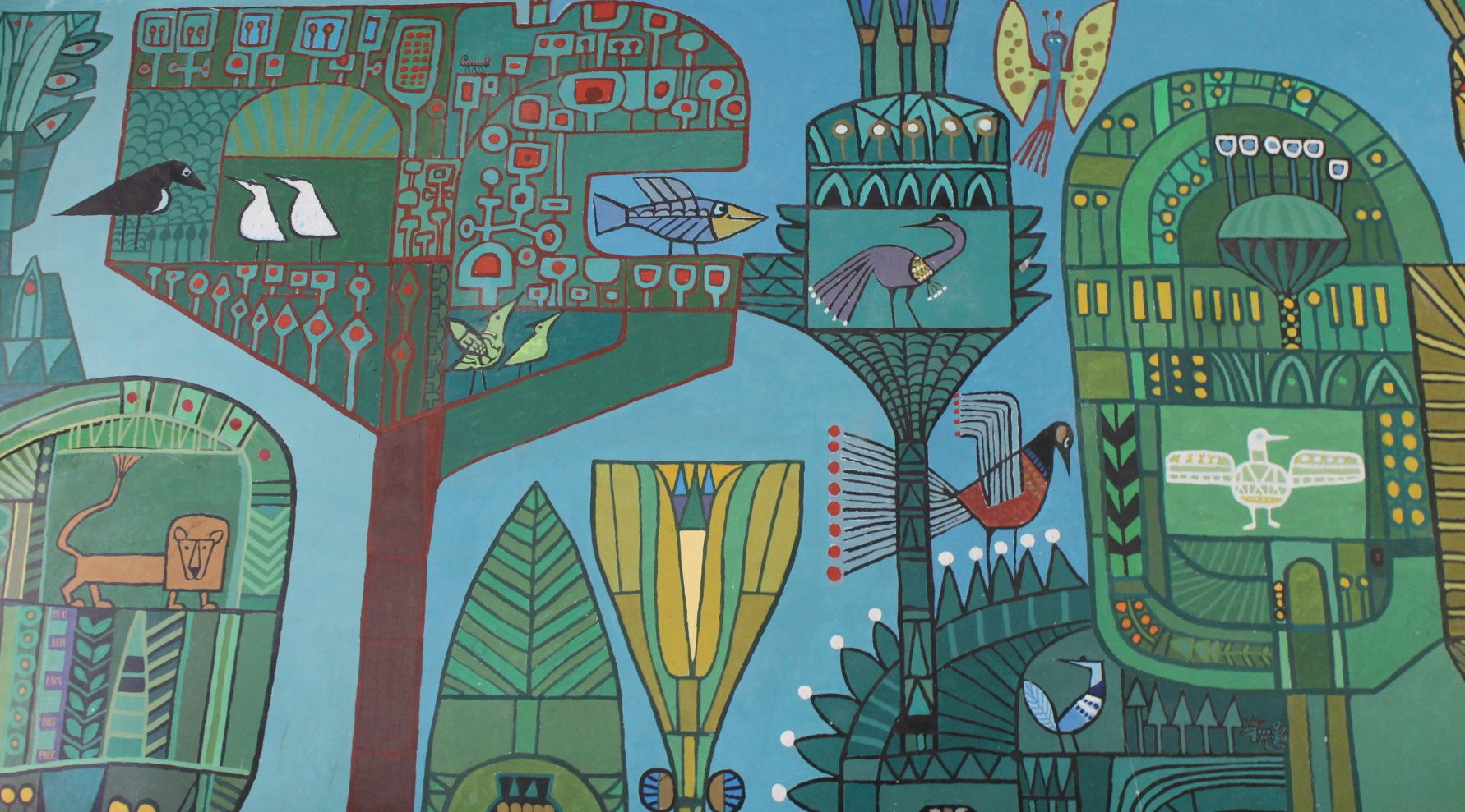 Im Schulgarten konnten wir einen Teich, Beerensträucher, einen Weinrankentunnel, einen Löwen, Bienen, ein Insektenhotel und blühende Stauden entdecken.