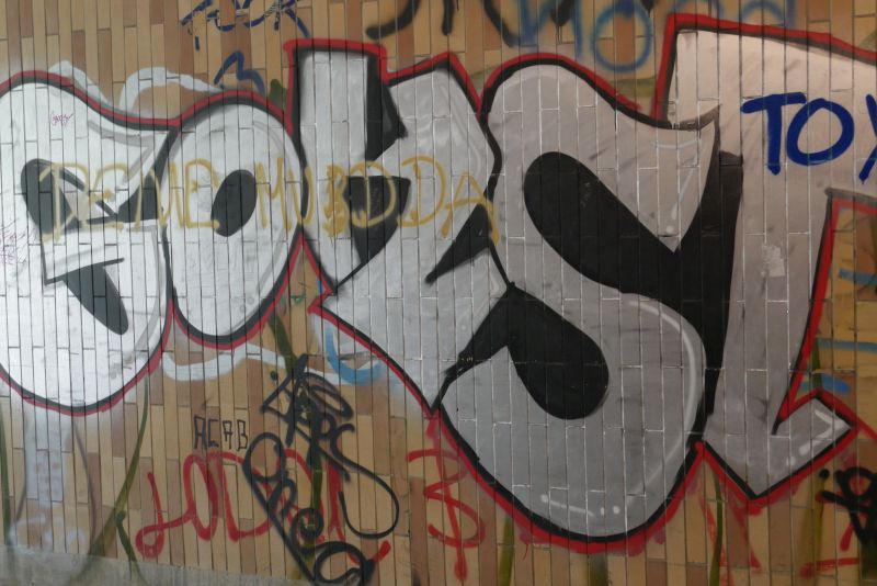Wenn man durch die Autobahn Unterführung am Silvrettaweg geht, sieht man links und rechts ganz viel Graffiti.