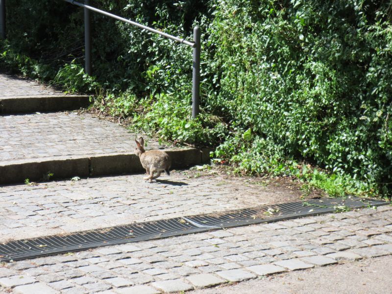In den Büschen, manchmal auch auf den Wegen oder Wiesen, kannst du im Westpark Kaninchen entdecken.