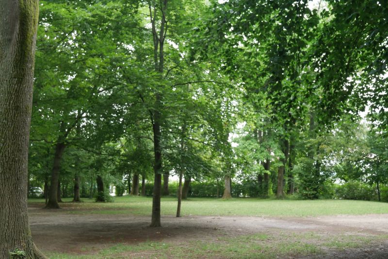 Hier im Schuchwäldchen kannst du neben dem Spielplatz und dem abenteuerlichen Gebüsch auch eine Tischtennisplatte finden. Sie steht im Schatten unter großen Bäumen, wodurch man
