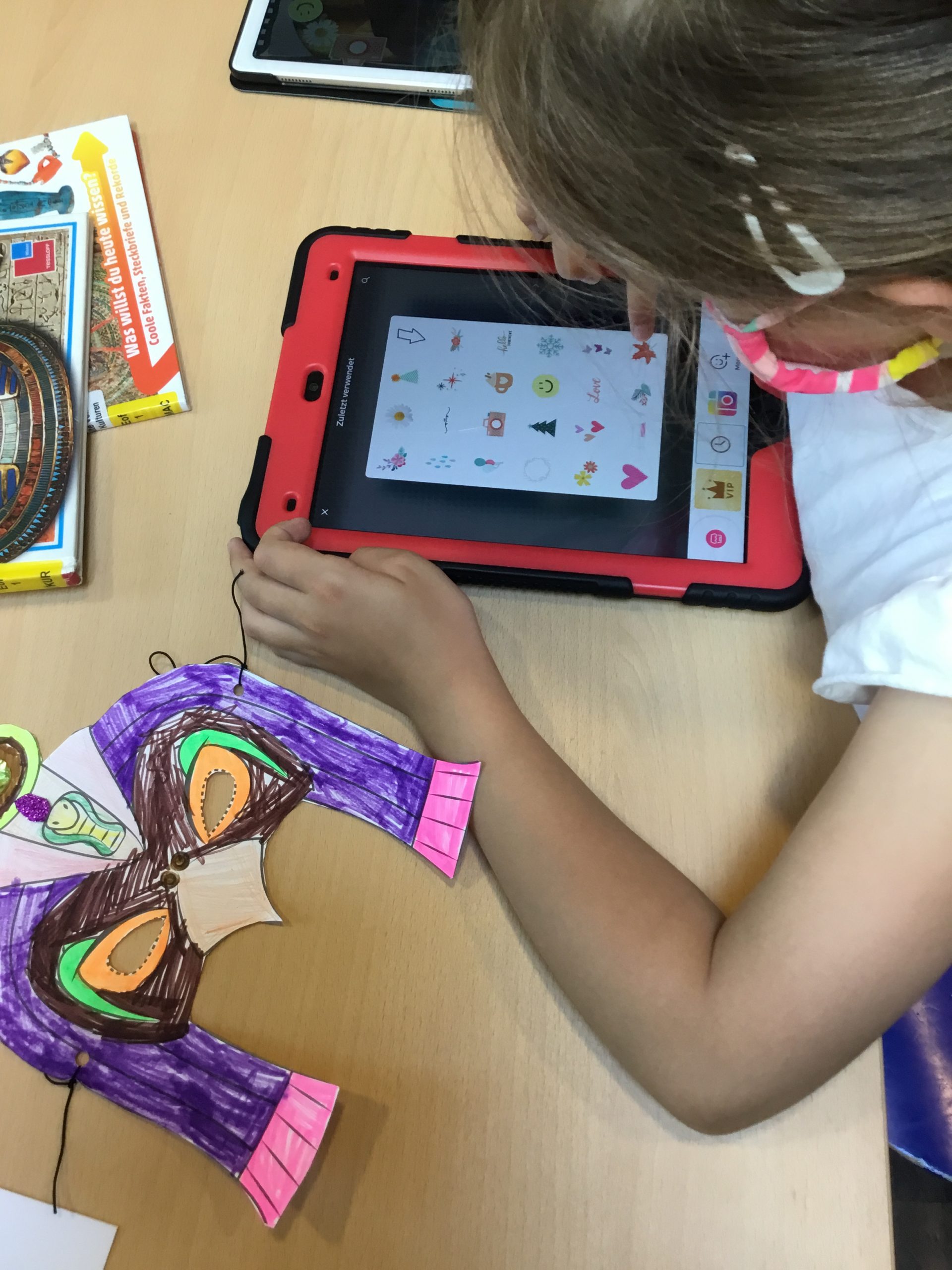 Das Ägypten Thema bereitete allen Kinder wieder viel Spaß, mit dem Tablet Collagen zu gestalten. In der Kreativ Station konnten sie Masken und Schmuck in Ägyptischen Style basteln.