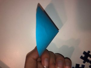 • Lege die Seiten des aufgeschnittenen Kreises übereinander und klebe sie mit Kleber oder Tesafilm fest, so dass ein Kegel entsteht.