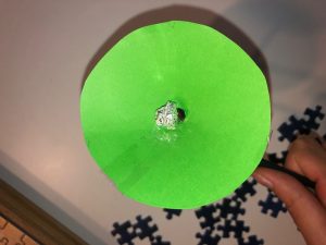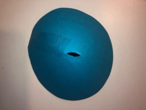 • Schneide den Kreis aus und schneide ihn an einer Stelle, von außen bis zur Mitte mit einer Schere ein.