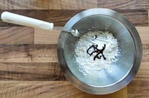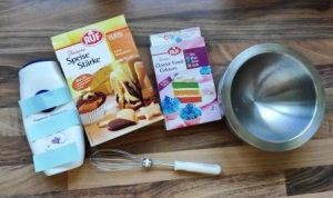 | Ihr gebt alle Zutaten – Speisestärke, Duschgel und Lebensmittelfarbe – in eine Schüssel und verrührt diese miteinander.