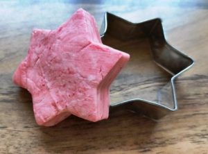 Wenn ihr Lust habt könnt ihr die Masse ausrollen und mit einer Ausstechform eine schöne Seife formen. Oder ihr knetet ganz frei und schaut was am Ende dabei raus kommt.