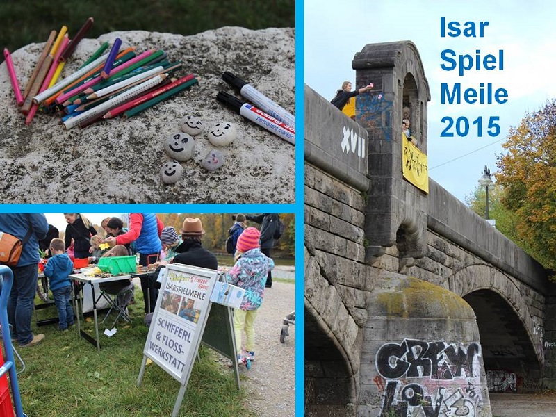 Auf dem Abschlussfest der Isarspielmeile gab es viel zu spielen und zu bauen. Ob verrückte Lehmgesichter, lustige Schifferl, looping-machende Flugobjekte,