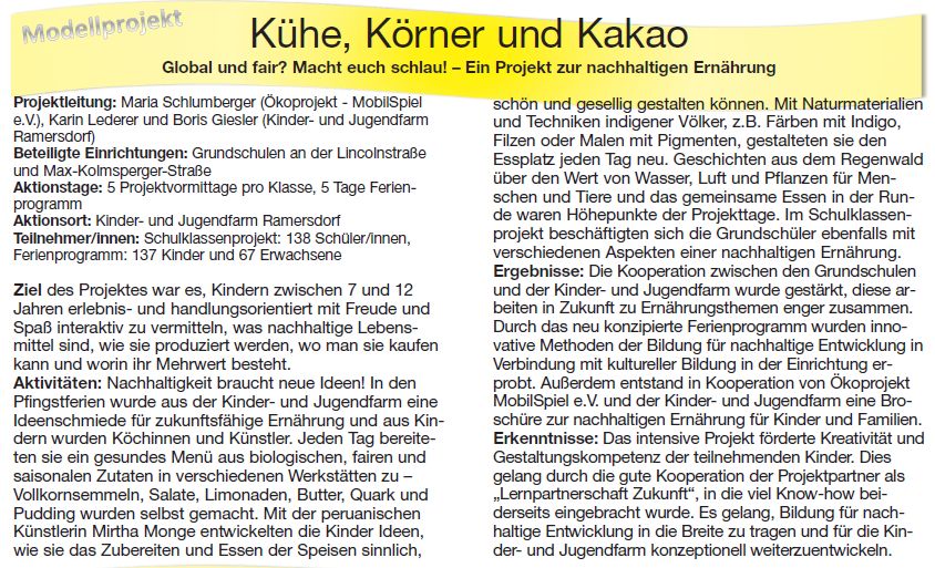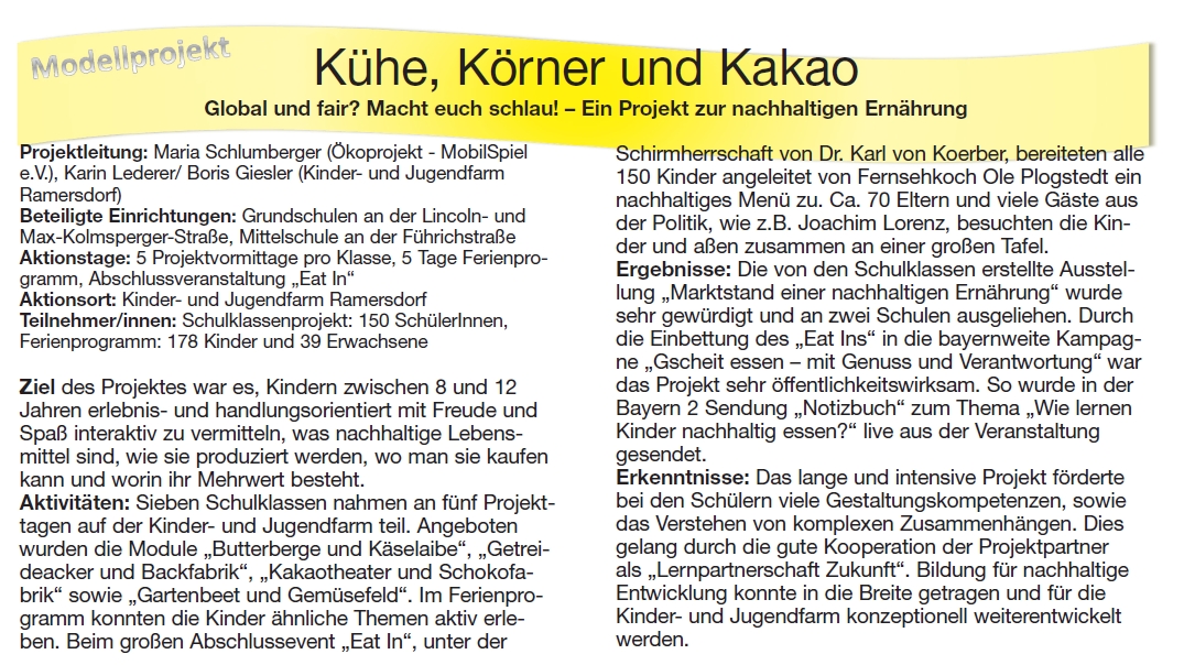Wir danken den Beteiligten für ihr Engagement: Kinder- und Jugendfarm Ramersdorf, Ökoprojekt MobilSpiel e.V., Umweltbildung.Bayern