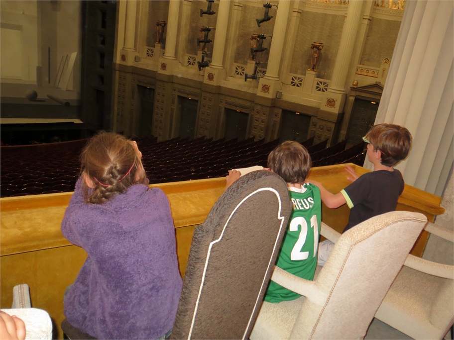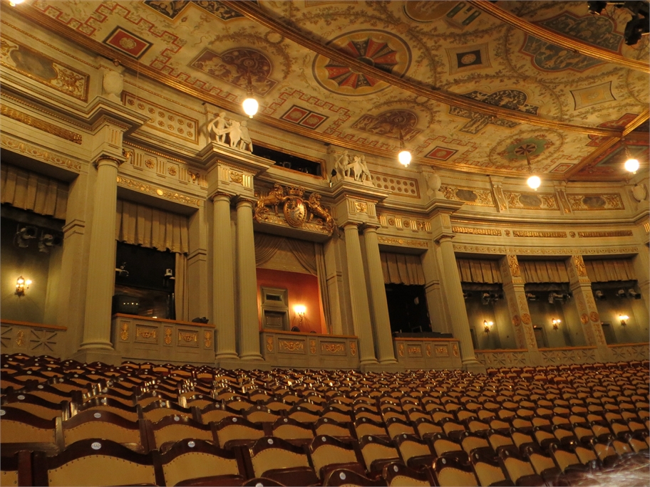 ZuschauerraumDamals zogen immer mehr Leute nach Bogenhausen und damit sie nicht so weit zum nächsten Theater laufen mussten, wurde es hier vor über 100 Jahren erbaut. Das Theater ist sehr ähnlich gebaut wie das Festspielhaus in Bayreuth und der Zuschauerraum sieht ähnlich wie in diesem Opernhaus aus wie ein Amphitheater. Das heißt die Sitzplätze sind wie in einem römischen Theater im Halbkreis angeordnet.