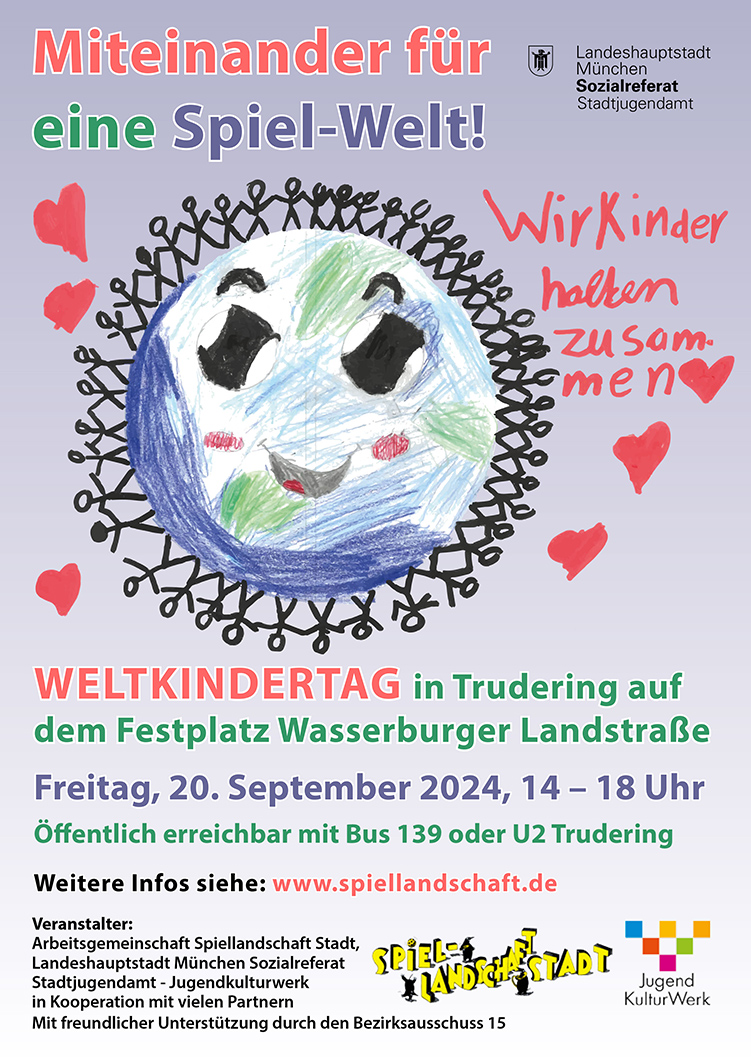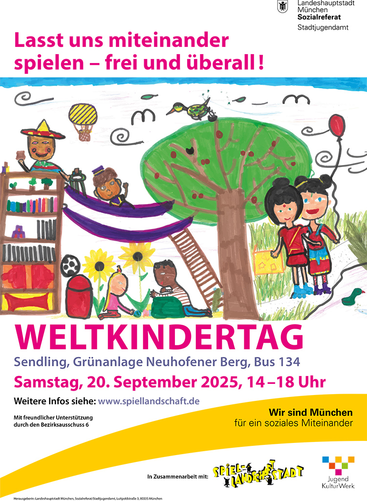 Zum Weltspieltag am 28. Mai und zum Weltkindertag am 20. September führt das Netzwerk Spiellandschaft Stadt in München in jährlich wechselnden Stadtteilen große Kinder- und Familienfeste durch – für das Kinderrecht auf Spiel!