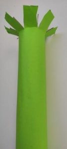 Danach schneidet ihr die Rolle an einem Ende rund herum, 2 cm tief, öfters ein, so dass ihr kleine Klebelaschen habt.