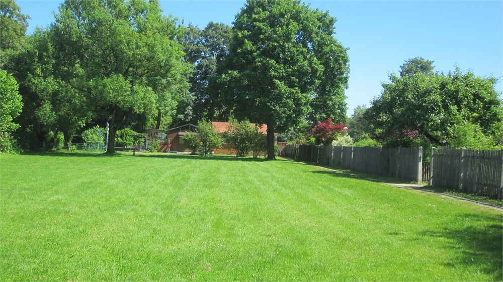 Dieser Spielplatz liegt zwischen den Schrebergärten.