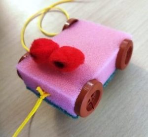 Bastel- und Spielanleitung für ein Schwammauto (geeignet für Kinder zum Spielen ab 6 Monaten)