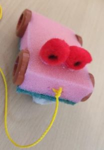 Bastel- und Spielanleitung für ein Schwammauto (geeignet für Kinder zum Spielen ab 6 Monaten)
