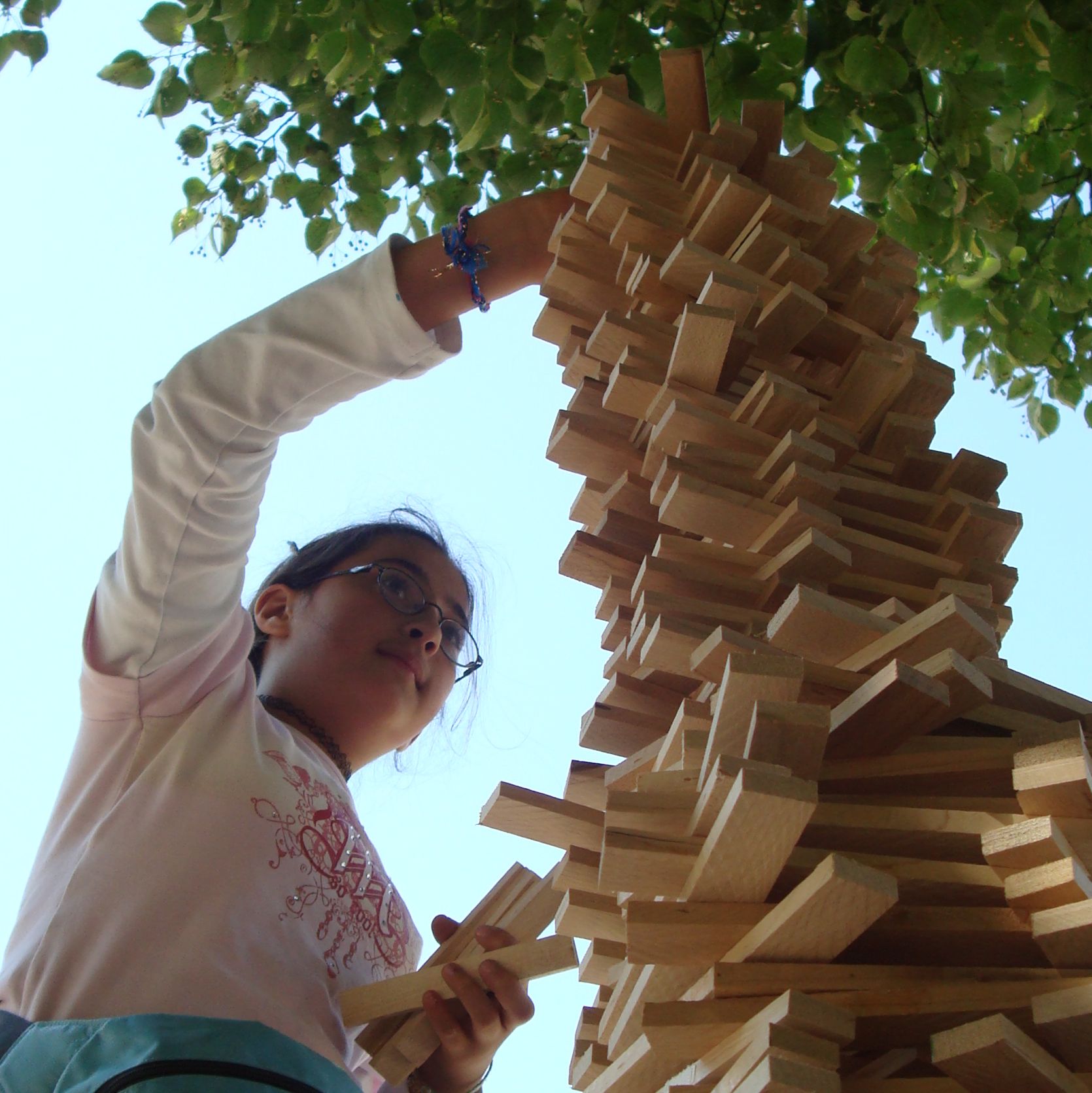 Klötzchen aus unbehandeltem Holz sind ein ideales Spielzeug, um mehrere Altersgruppen im gemeinsamen Spiel zu beschäftigen.