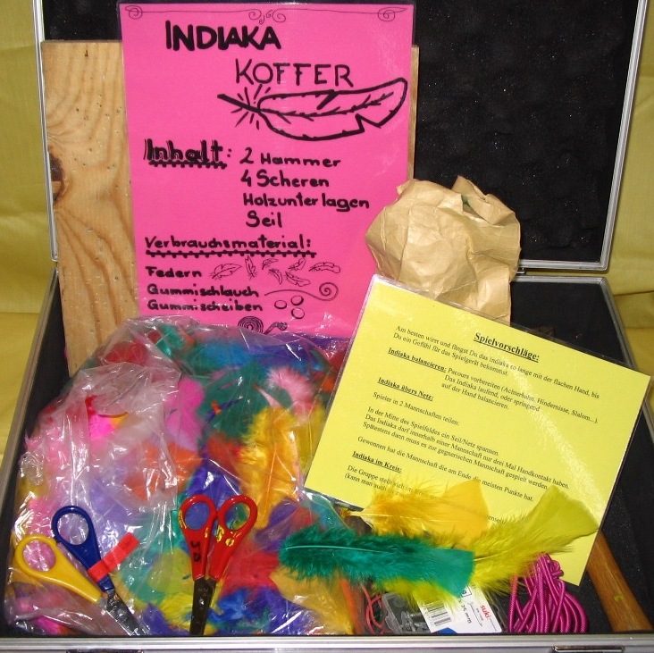 Im INDIAKAKOFFER findet ihr Material und Anleitung zur Herstellung des Federspielzeuges Indiaka. Dazu gibt’s auch Spielvorschläge, so dass ihr gleich damit spielen könnt. Bitte beachten