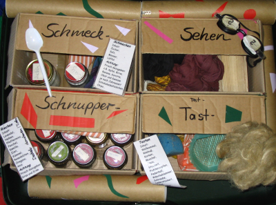 Mit dem NATUR- & SINNESKOFFER werden die Sinne getestet. Was erkennt ihr am Geruch? Was erschmeckt ihr mit verbundenen Augen? Was könnt ihr ertasten? Im Koffer befindet sich die Grundausstattung dafür und dazu ein Hör- und Riechmemory. So könnt ihr neben Tests, auch spielen oder einen Wettbewerb der Sinne ausrichten.