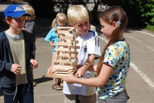 Außerdem werden viele Spiele mit den Klötzchen gezeigt und gespielt, wie z.B. Tic Tac Toe oder Vier gewinnt mit Klötzchen, Klötzchenmemory, Montagsklötzchen oder „Schau nicht um der Klotz geht um“.