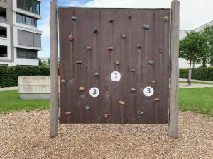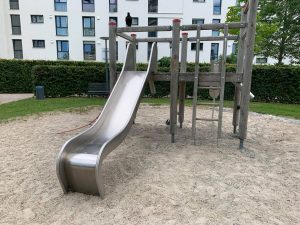 Man kann alles Mögliche finden, zum Beispiel eine Kletterwand, eine Schaukel, eine breite Rutsche, ein Trampolin im Boden oder eine Nestschaukel. An einem der Spielplätze wachsen auch viele Rosen, Lavendel und auch Himbeeren.