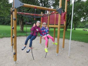 Der Spielplatz an der Herterich Straße überzeugte die Spielplatzforscherinnen Tiffi (9), Hanna (9), Sara (8), Lana (9), Monika (9) und Tuana (9) besonders aufgrund der großen Wiese, die zum Toben, Turnen und Picknick machen ein lädt. Außerdem findest du hier zwei tolle Rodelhügel zum Schlittenfahren im Winter. Es gibt ein kleineres Spielgerät mit Kletternetzen, Feuerwehrstange und Tellerschaukeln und neben diesem Spielgerät kannst du auf einem tollen, ausladenden Kletterbaum klettern. Weiter hinten auf der Wiese ist noch ein größeres Spielgerät aufgebaut, auf dem du auch klettern kannst. Aber auch rutschen und balancieren kannst du hier gut, finden die Spielplatz Forscherinnen. Toll finden die Mädchen auch die beiden Schaukeln, weil du hier besonders hoch schaukeln kannst.