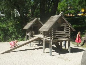 Hier kannst du auf einem Wasserspielplatz spielen oder am Volleyballnetz Volleyball. Jelena (12) findet die Blumenwiese hier besonders schön. Die Kinder machen hier im Hochsommer gerne Wasserschlachten.